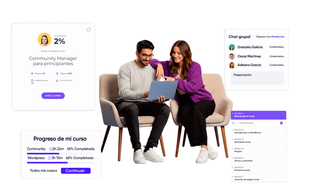 Te preparamos para ingresar al mundo laboral brindándote las herramientas necesarias para conseguir un trabajo. Monitorea tu progreso y resultados con la plataforma individual de alumnos que te ayudará a gestionar cada curso.